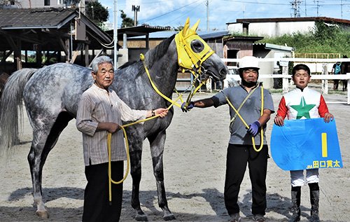 騎手控室では、親しい厩務員さんに「よくやった」と丸刈り頭をなでられ続けてご機嫌の貫太君。笠松競馬場は「ホーム」と自覚しており、第1戦勝利後にも「地元で毎回勝たせてもらっており、幸先良いスタートが切れました」とにこやかだった。