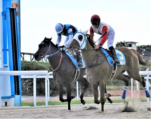 スタートダッシュを決めると作戦通りスイスイと快調な逃げ。3~4コーナーでも後続を3馬身差ほど離し「これは上位入線間違いなし」と手応え。追ってきたのは田口騎手のゼンダンクラージュ(セン馬5歳、柴田高明厩舎)。ラスト100を切って鋭い切れ味を発揮。マッチレースの様相となり、ゴール寸前、田口騎手がきっちりと差し切って笠松ラウンド2連勝を決めた。
