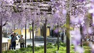 羽島市の竹鼻別院、フジの花が見頃 漂う甘い香り