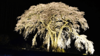白川町の水戸野シダレザクラ満開 闇に浮かぶ鏡桜