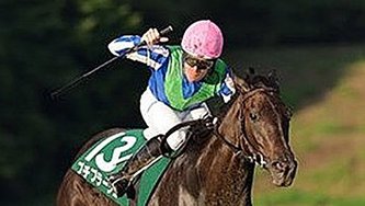 昨年の盛岡・オパールカップで芝重賞を制覇した渡辺竜也騎手とプチプラージュ(岩手県競馬組合提供)...