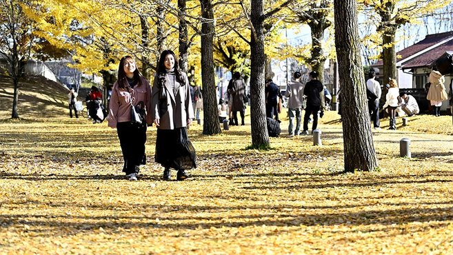 イチョウ落葉、冬へ駆け足 岐阜・各務原市、学びの森
