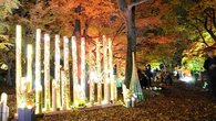 もみじ祭で初のライトアップ盛況、岐阜・可児市 竹のオブジェや演奏、幻想的