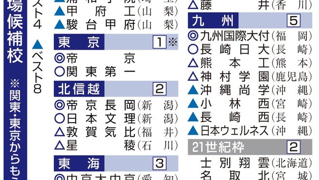 第98回選抜高校野球大会(3月19日開幕・甲子園)の出場32校を決める選考委員会は30日、大阪市内で開催される。一般選考では30校を選出。 各地区の出場枠は北海道1、東北3、...