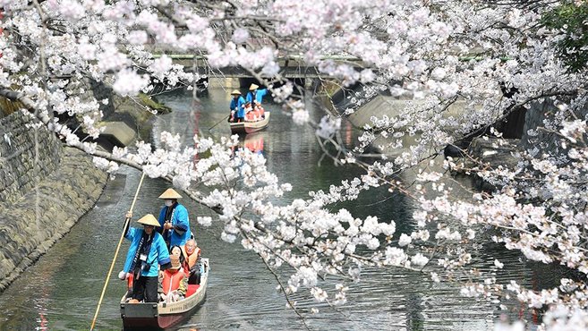 水都の桜満開、ゆらり舟下り 大垣市・水門川