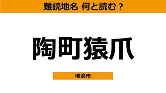 「陶町」だけでも難読といえますが、さらに大字(あざ)の「猿爪」も難読です。初見で正しく読むのは...