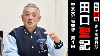 田口聖記監督インタビュー4回目は、プロ野球に指名される投手に育てるこつなど、岐阜県内でも定評が...