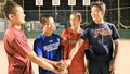 母校のグラウンドで久々に顔をそろえた4人。全員が主将を務めることに「同じチームだったから不思議な感じ」と笑う水谷さん。「チームがうまくいかず主将を辞めたい時もあったけど、率先して行動することで周りが信頼してくれるようになった」と胸を張る。