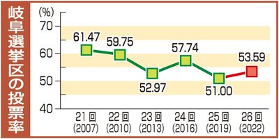 投票率53・59% 参院選岐阜選挙区、過去3番目に低く