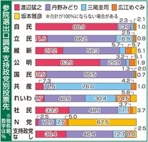 渡辺氏、男女5割超 参院選、岐阜選挙区出口調査分析