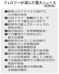 さらに、本紙報道部が選出した15項目の県内ニュースから、重大と思うものを複数回答で選んでもらうと、新型コロナ流行を受けた「小中高の休校」が最多。3カ月に及ぶ異例の長期休校は家庭への影響も大きく、6割以上の人が選択した。