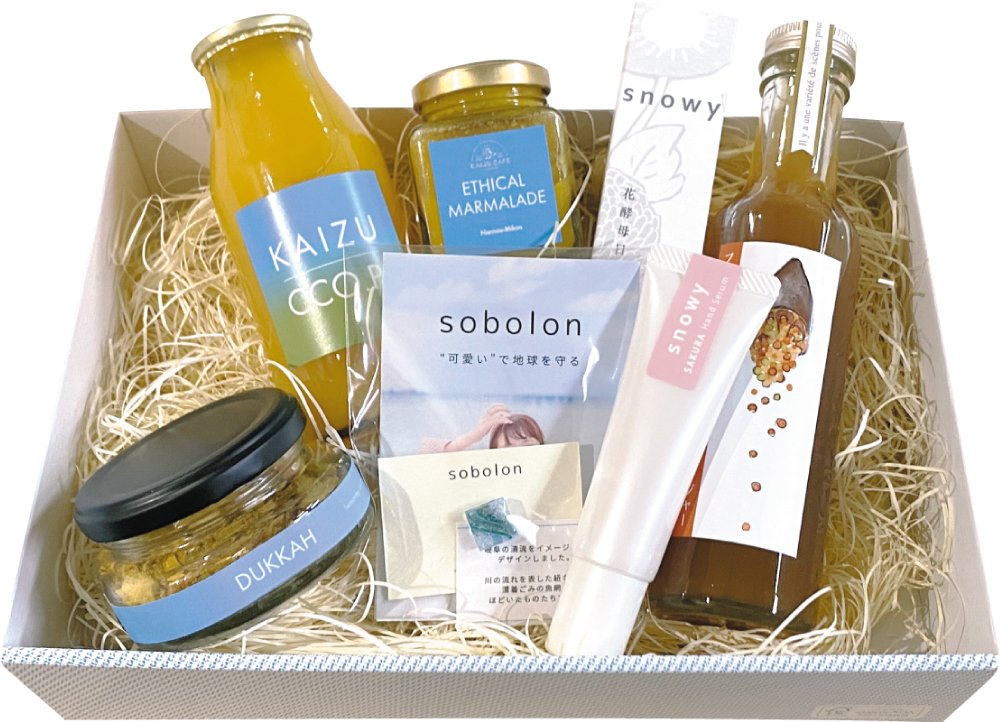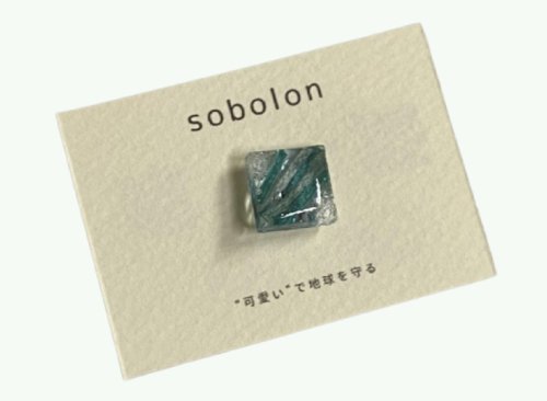 「かわいいで地球を守る」をコンセプトにしたアクセサリーブランド「sobolon」のピンバッチ。海洋プラスチックを拾い集め、人の手作業で一つのアクセサリーに。岐阜の清流をイメージして作られています。