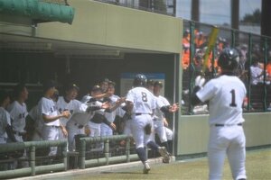 【高校野球速報】麗澤瑞浪7―1大垣南 高校野球 2022年7月17日 14:55 麗澤瑞浪×大垣南=1回裏大垣南、本盗で1点を先制した主将の高橋を、笑顔で迎えるナイン=KYB 麗澤瑞浪×大垣南=5回表麗澤瑞浪、無死満塁の好機で2点二塁打を放ち、ガッツポーズする清水=KYB 麗澤瑞浪×大垣南=先発する麗澤瑞浪の森岡=KYB 麗澤瑞浪×大垣南=先発する大垣南の渡辺=KYB 麗澤瑞浪が逆転勝ちで初戦突破。0―1の四回に同点に追い付くと、五回に一挙5点を挙げ、中盤以降は優位に試合を進めた。大垣南は一回に先制したが、その後は振るわなかった。 スマホ見せてグルメ・買い物お得に 岐阜新聞デジタルクーポン トップ 高校野球の試合記事 高校野球 【高校野球速報】麗澤瑞浪7―1大垣南 関連記事 【高校野球速報】土岐商6―5各務原 【高校野球速報】加茂13―6山県 【高校野球速報】大垣商6―0大垣養老 【高校野球速報】飛騨高山8ー5可児 【高校野球速報】帝京大可児5―2岐阜農林 秋季東海高校軟式野球 中京、多治見北、県岐阜商8強 おすすめ記事 名物パフェと感激エビフライ…ごちそう満腹夢心地 岐阜・中津川市のレストラン「プリンス松葉」 【速報】岐阜県高校駅伝 美濃加茂が男女アベック優勝 都大路切符 タブレット端末での教育、問われる「1人1台」 岐阜県立高校で生徒負担へ ぎふ信長まつり開幕、アニメ「小市民」コラボイベントも 柳ケ瀬土産としてグッズ販売