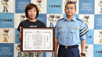 暑い朝、人家ない道歩く高齢男性「駅まで行く」保護し連絡 女性に感謝状、岐阜・下呂署