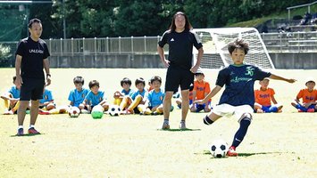 サッカー少年へ熱い指導 元日本代表・本田泰人さんと岡野雅行さん、岐阜・関市で教室