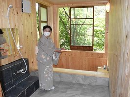 江戸時代の「薬湯風呂」復活 ヒノキふんだん、浴室一新