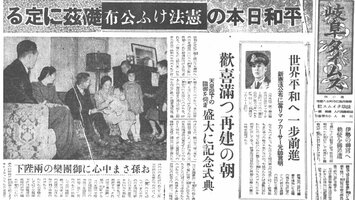 県内では、各地で祝賀行事が催された。岐阜市の柳ケ瀬を華やかなみこしが練り歩き、翌日の紙面は「威勢のいい“ワッショイワッショイ”の掛け声が、賑やかな銅鑼(どら)や太鼓の鳴り物とともに全市を包んだ」と公布日の熱気を伝えた。