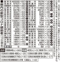 【13日・新型コロナ詳報】岐阜県で3855人感染3人死亡 土曜日で過去最多