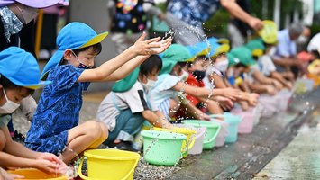暑い街、保育園児ら「打ち水大作戦」岐阜・多治見市