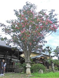 紅色鮮やかサルスベリ、夏空に映える 岐阜市の真性寺で見頃