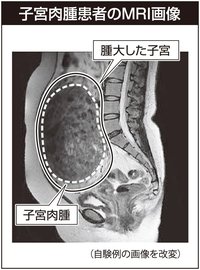 子宮肉腫は子宮内の腫瘤(りゅう)を形成しますので=画像=、子宮筋腫との区別が問題となります。子宮筋腫は良性の疾患で30歳以上の20~30%、小さな筋腫を含めると70%の女性が持つといわれています。20代の女性にも見られることがあります。子宮筋腫の半数以上が無症状で経過し、健康診断や他の病気の診察時に偶然見つかる場合もあります。つまり、子宮筋腫があることに気付かないまま過ごしている女性が多いのです。筋腫がある程度大きくなると、血液供給が追いつかなくなり変性することがあります。変性は内部が粘液腫様や脂肪様に変化したり壊死(えし)や石灰化が生じたりして、筋腫全体が不整になる現象です。ただし子宮筋腫はあくまで良性で、肉腫に変わることはありません。