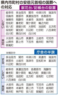 国葬対応「現場任せ」困惑 岐阜県内12市町村が半旗掲揚、未定目立つ 社会 政治・行政 2022年9月22日 08:44 政府が27日に開催する安倍晋三元... 残り904文字(全文:921文字) この記事をお読みいただくには「デジタルプラン」または「宅配+デジタルプラン」の会員登録が必要です。無料会員の方はログインしてマイページからコース変更してください。デジタルプランまたは宅配+デジタルプランをご登録中の方はログインしてください。 岐阜新聞デジタル会員に登録すると 無料会員向け記事が読める ニュースレターで最新情報が受け取れる デジタルプラン、宅配+デジタルプランなら Webオリジナルコンテンツが読める 紙面ビューアが読める チケットの先行発売に参加できる お得なクーポンが使える 新規登録ページ ログインページ トップ 岐阜のニュース 社会 国葬対応「現場任せ」困惑 岐阜県内12市町村が半旗掲揚、未定目立つ 関連記事 安倍氏国葬、岐阜県庁舎で半旗掲揚へ 市町村への要請はせず 安倍元首相の国葬、自民岐阜県連「岸田総理の説明評価」野党は「結局うやむや」 安倍氏国葬の是非は 反対「費用多額/在任中疑惑」賛成「外交で功績/長期政権」 旧統一教会「平和大使」に岐阜県議10人 関連団体から任命 旧統一教会に献金「1000万円」岐阜県内女性も きっかけは水晶即売会「先祖苦しんでいる」 宿泊税を還元、旅館やホテル改修補助 岐阜・下呂市 おすすめ記事 【緊急アンケート】岐阜のお年玉、いくらあげてる? あなたの相場教えてください! 鍛治舎巧さん「No.1への道」 メンタルトレーニング~百折不撓の心を創る~ 〈成長期(2年)〉体得させることと方法論…不安と自信 衆院定数減、岐阜県内首長「地方の声届くのか/格差是正を後退」 岐阜新聞社アンケート 高校生のタブレット端末個人負担、低所得者らには貸与 岐阜県教委方針