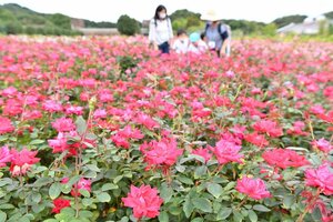 秋空の下、四季咲きのバラ見頃 皇室や英王室ゆかりの花も ぎふワールド・ローズガーデン