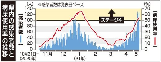 埋まる病床、自宅療養ゼロ維持に危機 コロナ感染拡大で使用率54%超