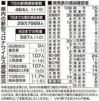 【8日・新型コロナ詳報】岐阜464人感染、2人死亡 岐阜市の医療機関などでクラスター