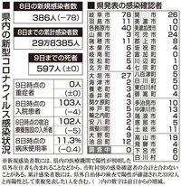 【9日・新型コロナ詳報】岐阜386人感染、4日ぶりに死亡ゼロ
