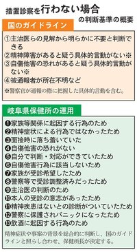 精神疾患の措置入院、保健所「前さばき」受診数押し下げか 岐阜県、国指針を拡大解釈「診察不要」 社会 医療 政治・行政 2022年10月13日 08:13 精神疾患の症状で自分や他人を傷つ... 残り1282文字(全文:1299文字) この記事をお読みいただくには「デジタルプラン」または「宅配+デジタルプラン」の会員登録が必要です。無料会員の方はログインしてマイページからコース変更してください。デジタルプランまたは宅配+デジタルプランをご登録中の方はログインしてください。 岐阜新聞デジタル会員に登録すると 無料会員向け記事が読める ニュースレターで最新情報が受け取れる デジタルプラン、宅配+デジタルプランなら Webオリジナルコンテンツが読める 紙面ビューアが読める チケットの先行発売に参加できる お得なクーポンが使える 新規登録ページ ログインページ トップ 岐阜のニュース 社会 精神疾患の措置入院、保健所「前さばき」受診数押し下げか 岐阜県、国指針を拡大解釈「診察不要」 関連記事 「措置入院」通報9割が診察に至らず 保健所調査止まり、岐阜県 「措置入院」岐阜県が検討会議新設へ 診察至らない事例頻発、在り方議論 診療報酬、5年間で111万円不正請求 岐阜・下呂の歯科医院を処分 東海北陸厚生局 杉原千畝、故郷で続く顕彰を体感 東京の研究会、岐阜・八百津町を8年ぶりに訪問 おすすめ記事 FC岐阜へ声援最後まで サポーター6000人「来季こそ」 岐阜・中津川市の自動運転バス実験中止 故障で運休、復旧間に合わず 杉原千畝、故郷で続く顕彰を体感 東京の研究会、岐阜・八百津町を8年ぶりに訪問 中津商高、招待試合熱く 野球部創部100周年、県岐阜商高と対戦