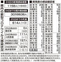 【25日・新型コロナ詳報】岐阜県内1158人が新型コロナ感染、死者3人、1千人超えは7日ぶり