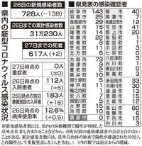 【27日・新型コロナ詳報】岐阜728人感染、80代と50代の2人死亡