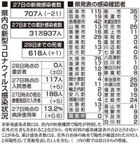 【28日・新型コロナ詳報】岐阜707人感染、1人死亡 4日連続死者確認
