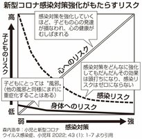 子どもたちの生活の変化はさまざまな形で子どもたちの心身の発達に影響しました。感染対策を強化すればするほど、子どもたちの心の健康はむしばまれると考えられています=図=。そのため、新型コロナウイルスの対策はハイリスクの子どもたちを守ることに留意しつつ、子どもの健康・発達のためにバランスの取れた対応が必要だと思います。