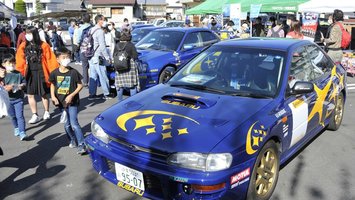 ラリージャパン舞台は岐阜へ、大会盛り上げ 中津川、スバルブルーの車体展示