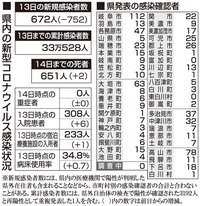 【14日・新型コロナ詳報】672人感染、累計33万人超す 2人死亡、死者発表は21日連続