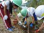 苗木はその年の4月、プランターで育て始め、直射日光から苗を守る木製のプランターボックスも自分たちで作った。水やりや草取りを欠かさず世話してきた。森本梢太(しょうた)君(10)は「自分で育てた苗木を自分で植えることができて良かった」と振り返った。
