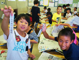 藤根隆校長は「NIEの担当教諭を中心に、学年の実態に応じた使い方を提案し、実践を重ねている。新聞は写真、見出し、文型、記事の組み合わせ方など、教材としての取り上げ方で活用の幅が広がる。来年度に向けて年間の授業計画に新聞を使った活動を位置付け、複数の情報を活用して考える力や、グラフ、表などデータを読み取る力を身に付けた子どもを育てたい」と話した。