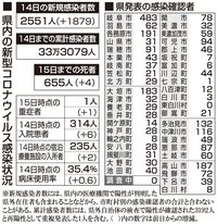 【15日・新型コロナ詳報】2551人感染、約2カ月ぶりに2千人を超す 岐阜地裁女性裁判官も感染