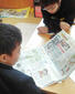 まず、前半部分の「チューリップは種子があるでしょうか」という300文字程度の部分を音読させました。その後、新聞と同じ文字数にした升目に記事を書き写させました。その際、拡大した升目に教師がお手本の文字を書いたものも用意しました。生徒が書いた後には、自身の文字を音読させました。最後に、後半部分の「チューリップには種子があり、花が咲くのに5年かかる」という文章を教師が読み聞かせました。読み書きだけでなく、語句の意味について話し合う場もあり、楽しい学習となりました。