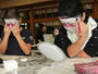 10月には、瑞浪市にある美濃歌舞伎博物館相生座の小栗幸江館長を講師に迎え、歌舞伎の歴史やせりふ回し、所作を熱心に学んだ。歌舞伎独特の化粧「隈(くま)取り」の講習もあり、児童たちは鏡を見ながらおしろいを塗り、資料を参考に目尻や鼻の周りに赤や青、茶の顔料でラインを入れた。