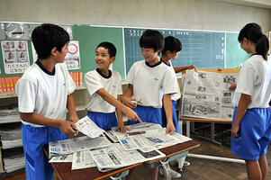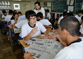 国語科の吉田昌知教諭(24)は「ゲーム的要素を取り入れた授業で新聞への親近感、興味ある記事を切り抜く作業で達成感を高めることができる。多様な情報が目に入る新聞を日常的に手に取り、世の中の動きを感じてもらいたい」と願う。