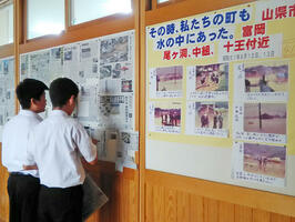 私の学校では、一人の生徒が主体的に掲示をしてくれています。刻々と明らかになる被害の様子に心を痛めながらも、真実を伝えなければという思いで生徒が続けてくれました。