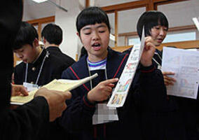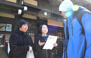 「エクスキューズミー(すみません)」。1月末、観光名所で知られる同市中心部の古い町並みで、3年生が外国人観光客に駆け寄った。