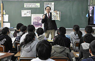 岐阜市安食の方県小学校(児童89人)で1月下旬、今春定年退職する木下康校長(60)が教員最後の特別授業を行った。5、6年生29人を対象に、校長自らが調べた学校の歴史や社会の出来事などを紹介。児童が奮闘したかべ新聞づくりにも触れ、「先人の思いが重なり築かれた今を大切に未来につなげてほしい」と呼び掛けた。