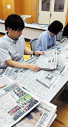 6月の初め、新規採用の先生2人に、NIEの講義をする機会を得ました。ネット世代の2人ですから、当然、ニュースは新聞から得るものではありませんし、日々の忙しさからほとんど新聞を手に取る時間もなかったようです。そこで、私は、新聞を読むことが最も簡単な生涯学習であり、学級経営や道徳に役立つことを紹介しました。国語と英語の先生でしたので「教科でも簡単に導入部分に新聞記事を使えるよ」と、具体的な紙面を提示し話しました。
