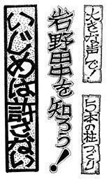白紙全体を眺め、レイアウトをイメージします。イラスト、囲み記事の置き場所は見た目の印象を左右するポイントになります。見出しにも力を入れます。手間は掛かってもレタリングで書き、メイン記事には横向きに表します。私はマス目入りの用紙をもとに作りますが、文字をマス目いっぱいに書いています。大きさがそろって美しく見えるからです。あと、これは遊びになりますが、題字の背景の地紋は岩野田中の校章を集合体にしてデザインしたものです。作るのが大変でしたが、これもオリジナリティーで、楽しみの一つです(笑)