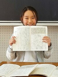 本校の6年生鳥澤友結さんは、自主学習ノートに毎日、分水嶺の記事を貼り付けて書き写し、感想を一言書くという学習を続けています。きっかけは、5年生の時の先生のアドバイス。始めたのは昨年の夏から。