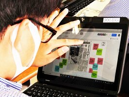 世代によって利用するコンテンツが異なることに着目した亀山康太さん(17)は、年齢層に合わせた災害への注意喚起を提案。「高齢者にはケーブルテレビや新聞、回覧板を通じた周知、『スマホ世代』と呼ばれる若年層には会員制交流サイト(SNS)で周知を図るのがよい」とした。屋外や居住地以外の場所で突然の豪雨に襲われる可能性を指摘した林千里さん(17)。ハンドサイズのハザードマップの必要性について「自宅の壁や冷蔵庫に貼る形のものではいざという時に活用できない。常時持ち歩きできる携帯用があると役立つのでは」と訴えた。各自は、関連性のある提案や対策をタブレット画面上で整理しながら、考えを深めた。